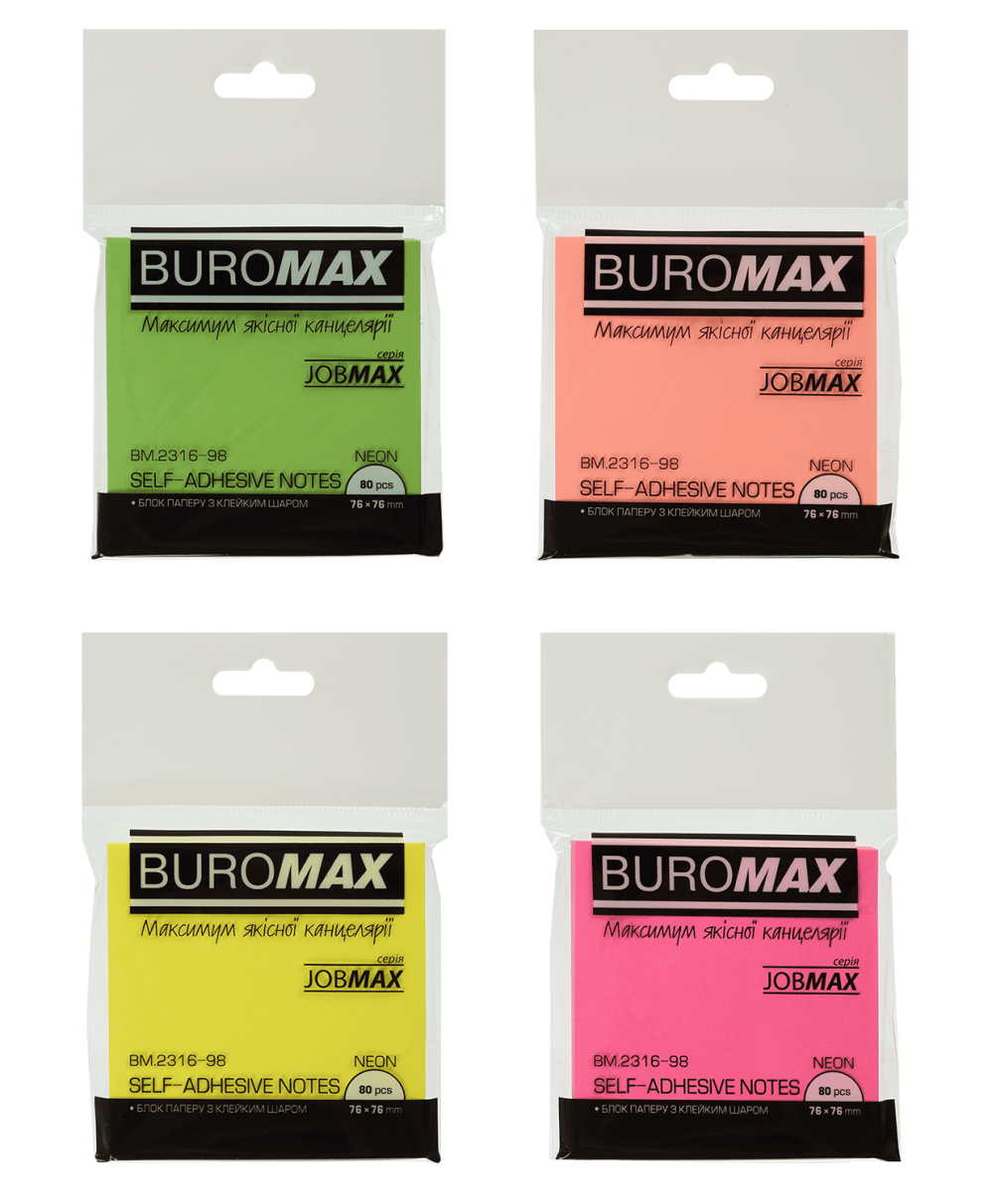 На сайте интернет-магазина Бюромакс одна из многих лучших по соотношению цена-качество позиций — это Блок бумаги для записей NEON 76х76 мм ассорти Buromax BM.2316-98. Артикул BM.2316-98 имеется в продаже со стоимостью - 8.58 / одну штуку. А для тех, кто покупает оптом мы готовы предоставить персональные скидки и накопительная система бонусов. Полную информацию об оплате и отправке заказа в — Вышгород, Борисполь или Мелитополь и в остальные города Украины можно выяснить набрав на номер 0800 213 122 (Бесплатно с мобильных и городских).