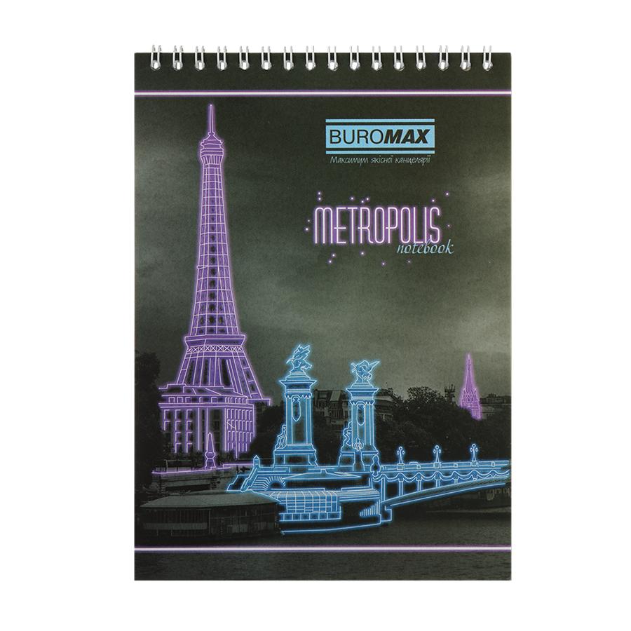 Блокнот на пружине сверху METROPOLIS А-5 48 листов, клетка, картонная обложка Buromax BM.24545101