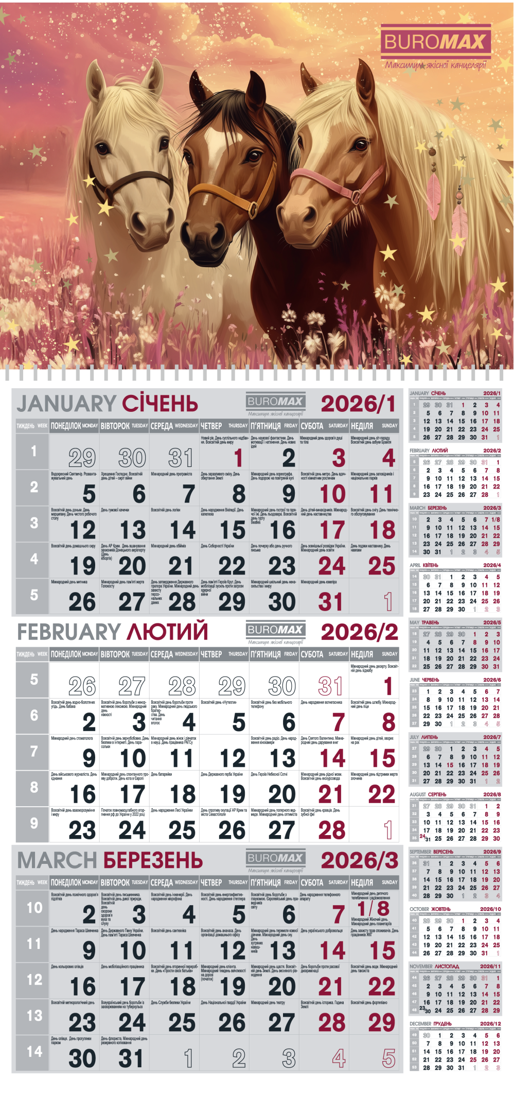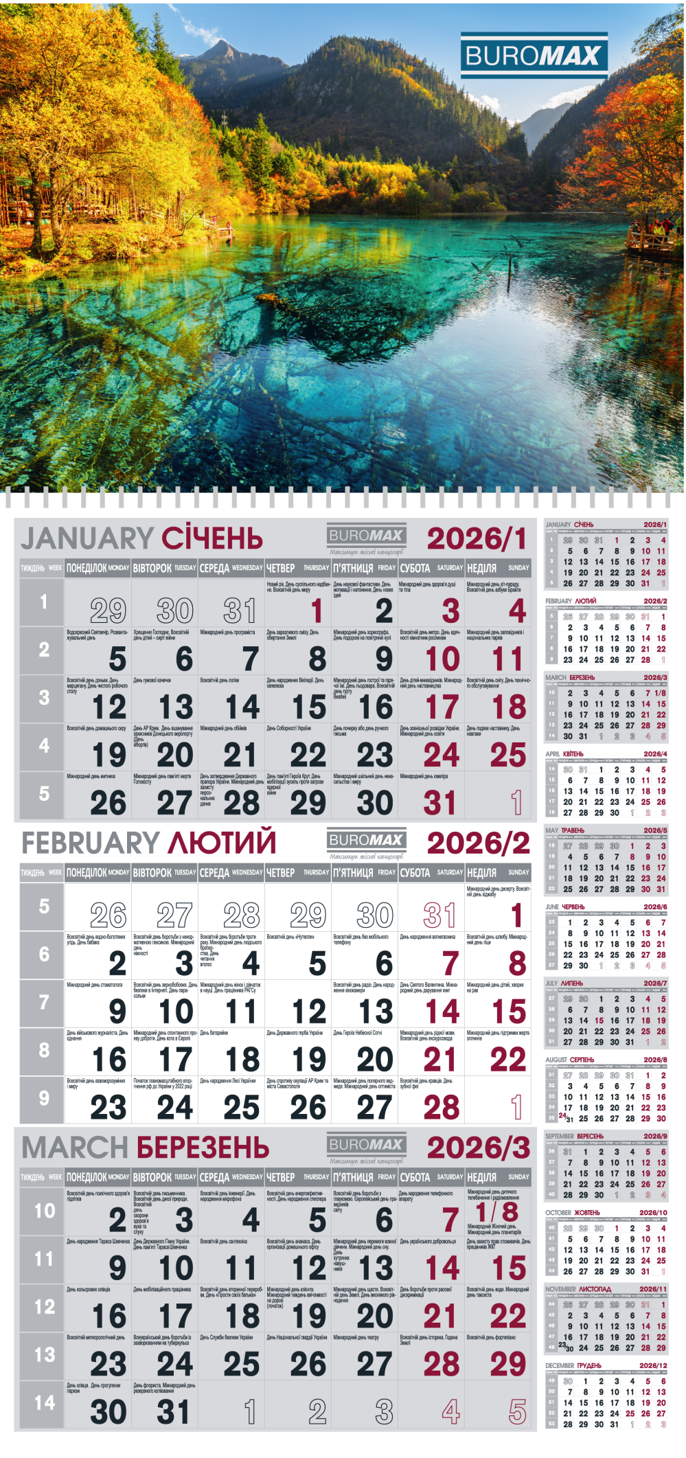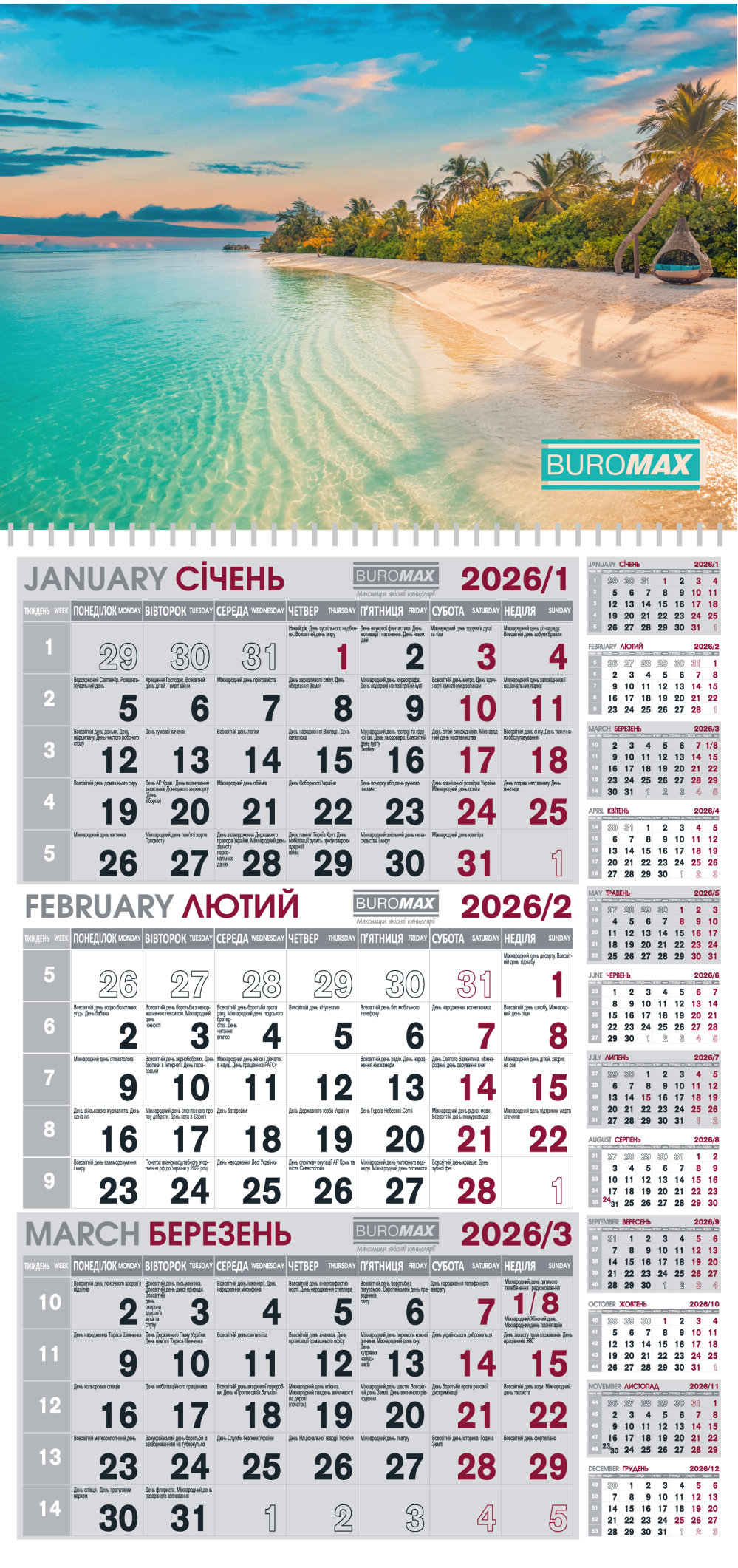 Календарь настенный квартальный 2026 Buromax BM.2106