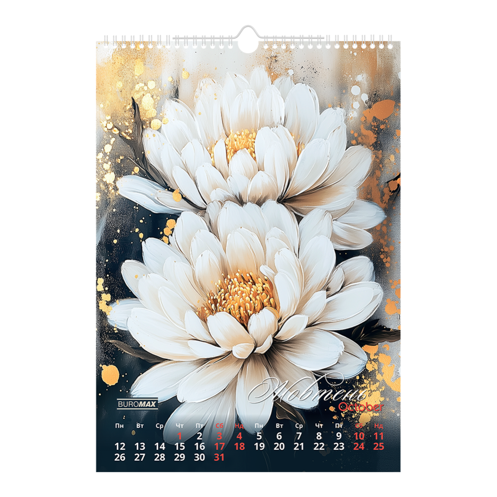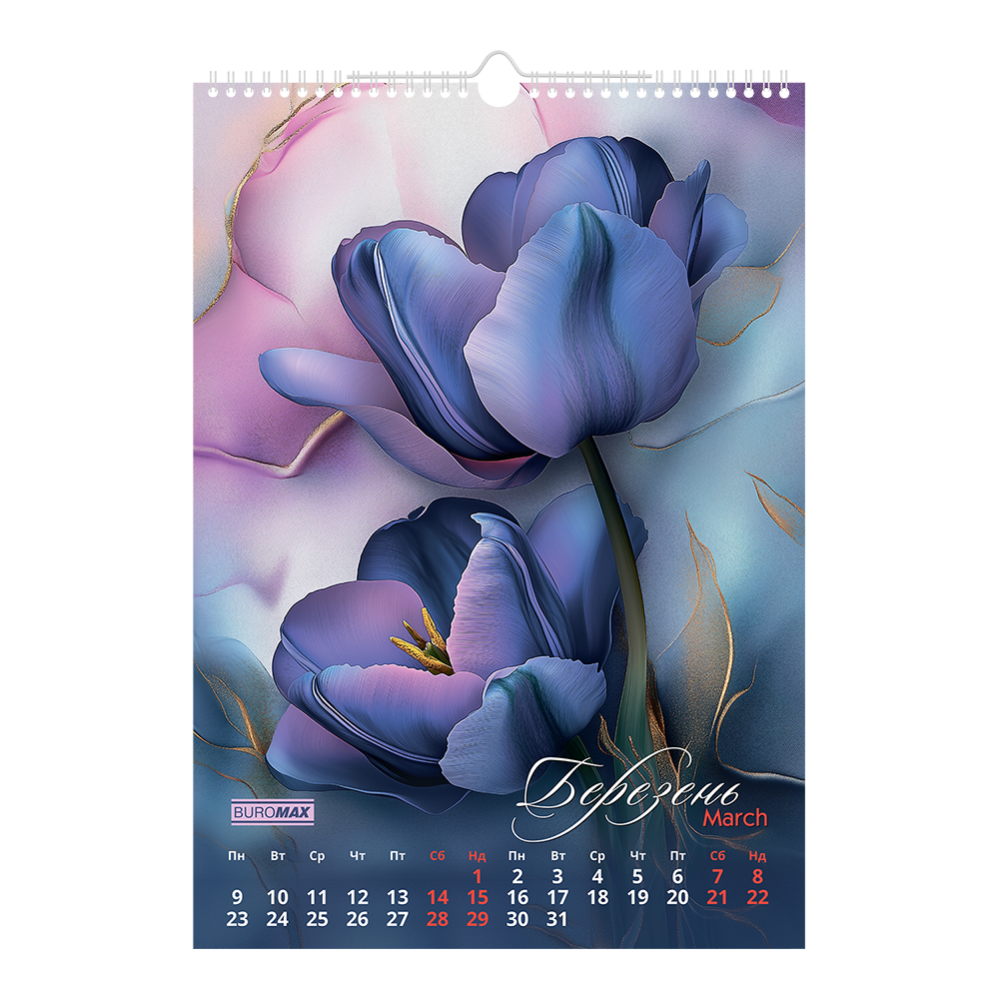 Настінний календар BUROMAX із дизайнерськими постерами Flowers стане стильним елементом інтер’єру та допоможе організувати планування на рік.