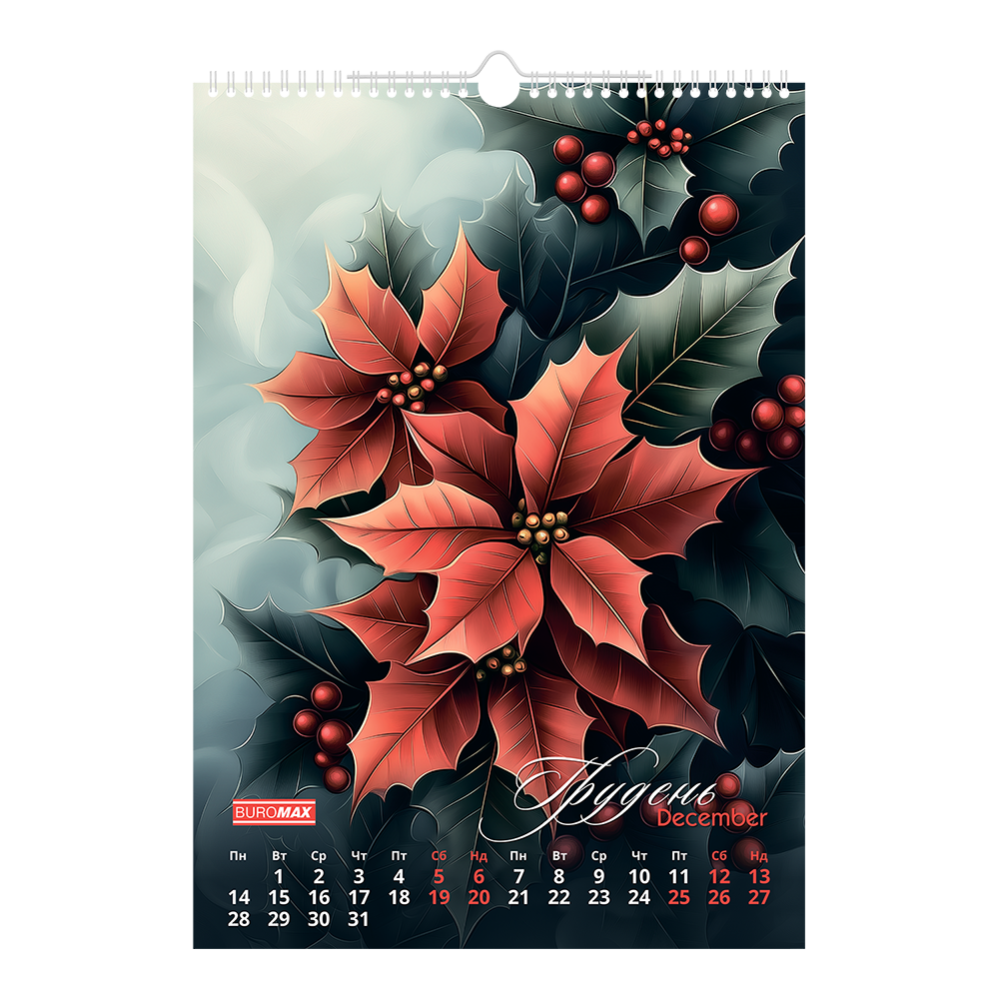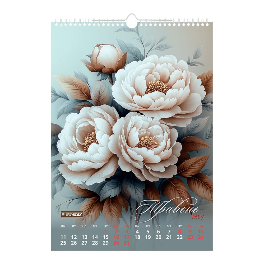 Календар настінний 2026 А3 1 пружина Buromax Flowers BM.210604