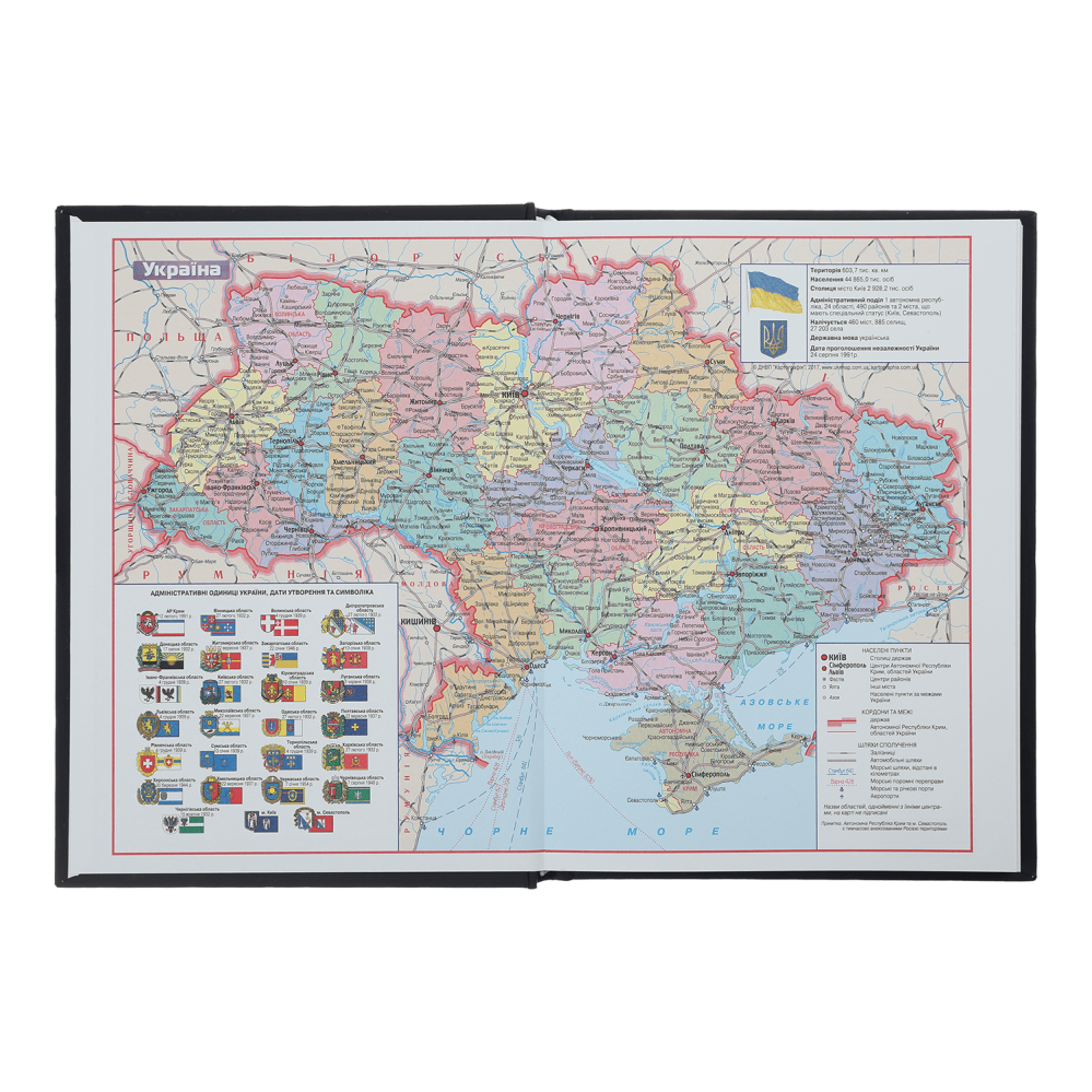 Формат — А5, 288 сторінок. Обкладинка повнокольорова з поліграфічними ефектами: вибіркове тиснення золотою фольгою. Внутрішній блок виконаний із білого офсетного паперу щільністю 70 г/м2. Для зручності передбачено закладку-ляссе. На форзацах розміщені карти України та Світу. Щоденник постачається в індивідуальному прозорому пакеті.